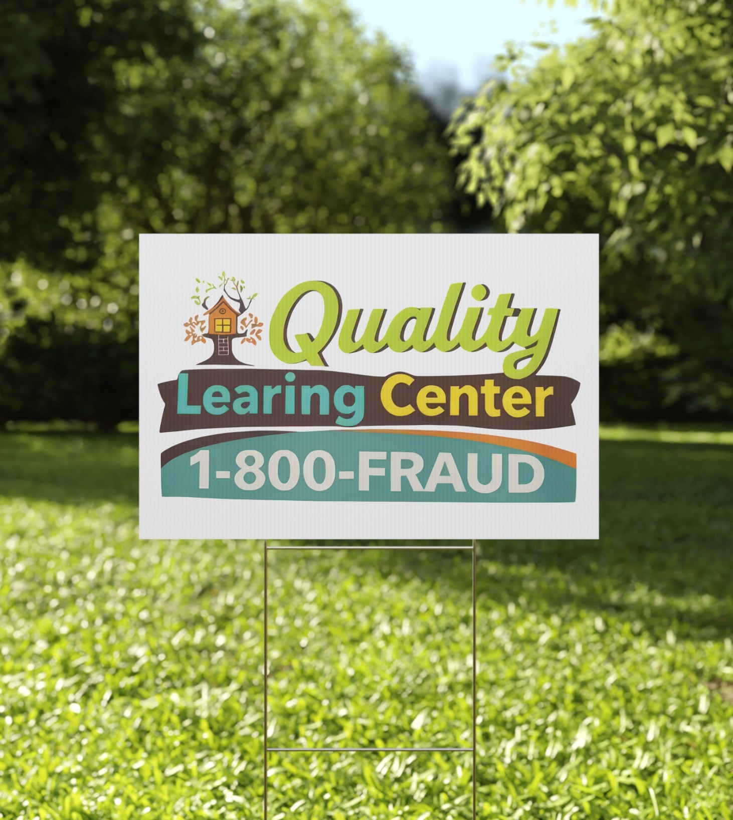 Featuring the infamous Quality Learing Center wording, this sign represents a situation so blatant it became unforgettable. Displaying it sends a clear message to everyone who passes by: stay aware, continue learing, and demand accountability. Whether placed in a yard, near a sidewalk, or outside a business or event space, it instantly sparks conversation.